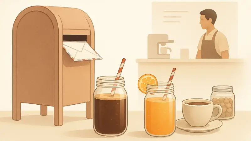 A mailed drink changes what a “café” even is. Instead of beans and grinders and a house recipe, the headline product is the sealed container and its origin story. The menu often reads more like a small import shelf: a few coffee drinks from one country, fruit sodas from another, maybe a milk tea line that comes in identical jars with different colored caps. The café still does some work—refrigeration, portion control, garnishes, maybe pouring over ice—but the core mechanism is distribution, not brewing.