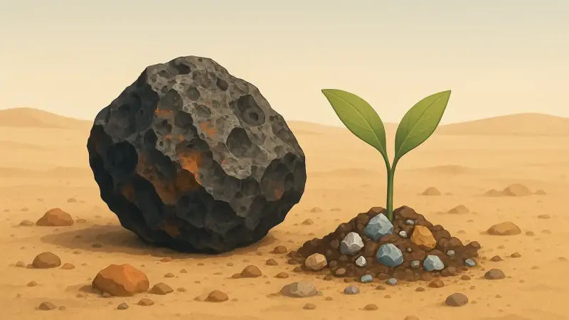 “Seed” doesn’t mean the soil suddenly makes gemstones. It means the meteorite acts like a starter kit. It supplies unusual elements and minerals, and it creates tiny chemical zones where new solids can precipitate. Desert soils are often slow to change, so even small inputs can leave a clear mineral fingerprint.