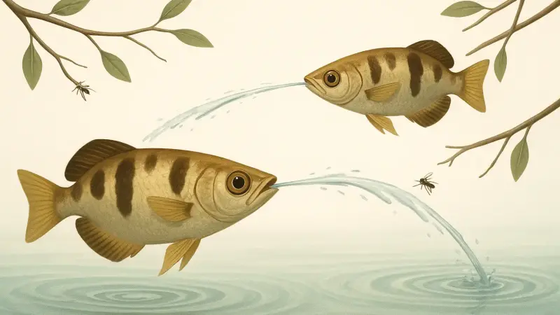A concrete scene that researchers and aquarists see often is an archerfish hovering under an overhanging twig, tracking a fly that keeps shifting its feet. The fish pauses each time the insect moves, then fires the moment it settles. When it works, the insect drops, hits a leaf on the way down, skitters sideways, and the fish is already turning to intercept it.
