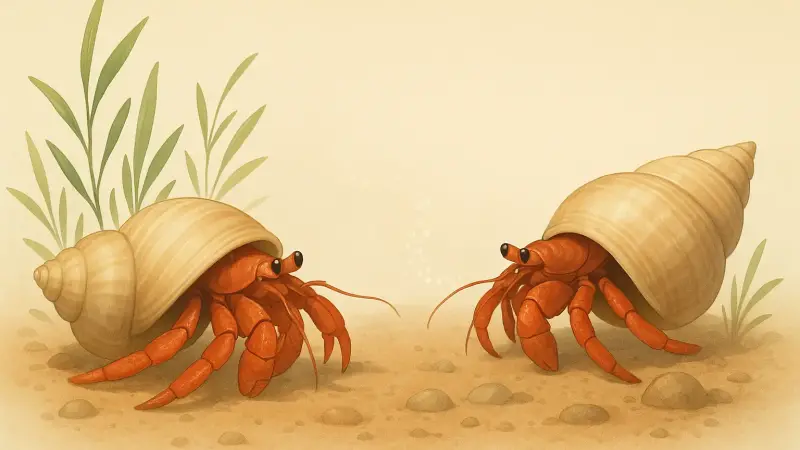 On some shores you can see a cluster of hermit crabs gathering around a single empty shell and then a fast sequence of swaps. It’s often called a vacancy chain. One crab moves into the newly available shell, and others step into the shell it leaves behind. Chemical cues help start the crowd. The empty shell carries traces that make it noticeable, and the crabs themselves add more chemical information as they touch and test it.