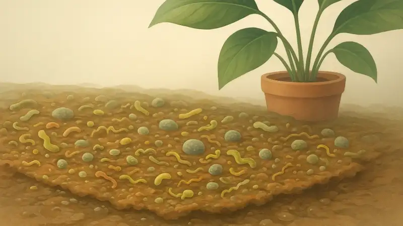 One detail people usually overlook is the saucer. Water that sits under a pot can stay damp for days. That creates a stable, low-light microhabitat that is very different from a leaf. It can favor different microbes than the ones on the plant itself, and it can change what’s released into the room when the water level rises and falls or when the surface dries and flakes.