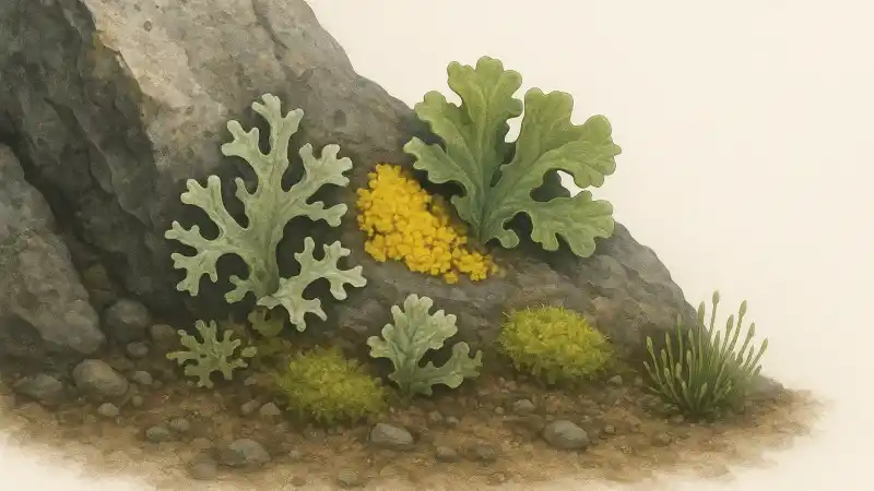 If the photosynthesizer partner is a cyanobacterium, there’s another step that can matter: nitrogen fixation. Not every lichen can do it, and the amount varies, but when it happens it adds usable nitrogen to a place that often has almost none. That is one reason later arrivals—bacteria, free-living algae, and eventually mosses—can get a foothold in what started as plain rock.