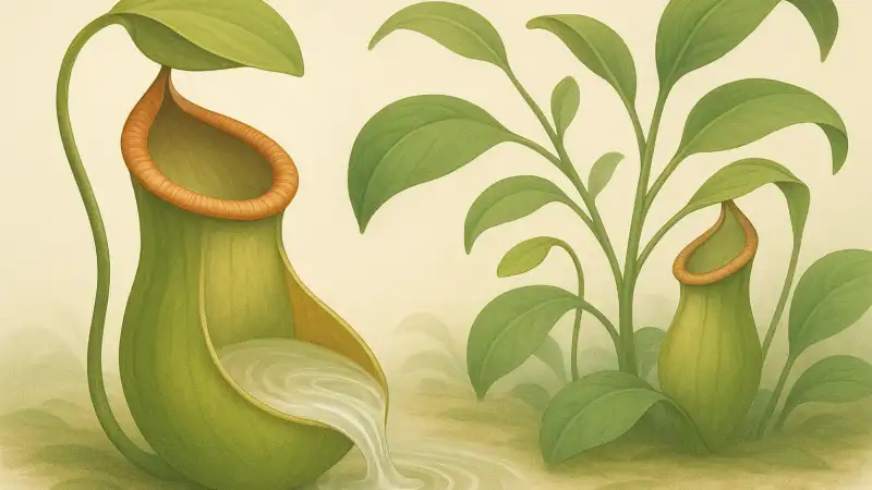 A smooth rim looks harmless until it gets wet. That’s the basic setup in a lot of pitcher plants, and it’s not one single place or species. It happens in Southeast Asia with Nepenthes (like Nepenthes rafflesiana in Borneo and Sumatra), and in North America with Sarracenia (like the purple pitcher plant, Sarracenia purpurea). An insect comes for nectar. It steps onto a glossy edge. Then the surface stops behaving like a surface. The animal can’t get traction, it slides inward, and the liquid at the bottom turns a fall into a trap.