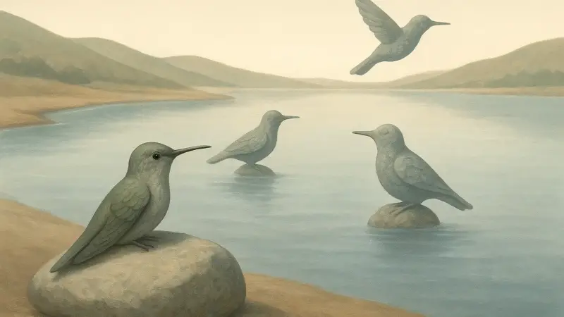 Birds don’t typically “turn to stone” while alive. What tends to happen is simpler. A bird dies from some other cause—exhaustion, injury, illness, or exposure—and ends up in the shallows or on the edge where water meets evaporating flats. The alkaline brine can irritate skin and eyes, but the bigger visual effect comes after death: mineral-rich water wets feathers and skin, then evaporates. Salts crystallize on the surface and between feathers. Over time, repeated wetting and drying can build a thicker crust that stiffens the body and locks it into a frozen-looking posture.