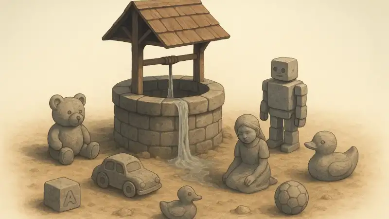 A coated toy creates a specific kind of confusion. It keeps its shape, like a cast, but the surface changes completely. The weight jumps. The sound changes when it’s tapped. Edges that were soft become hard. If the coating is thick, it can even bridge gaps and “freeze” moving parts, like a hinged limb or a spinning wheel. That’s part of why these wells gather stories about lost objects coming back transformed.