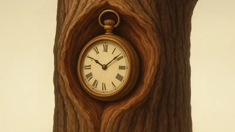 The complication is time. Trees grow outward, not quickly inward. A watch that appears deep in a thick trunk implies either a long period of growth after the watch was trapped, or that it wasn’t as deep as it looked when discovered. People often see a watch in a cut log and assume it must have been “at the center.” The growth rings, knots, and wound wood can make the geometry deceptive.