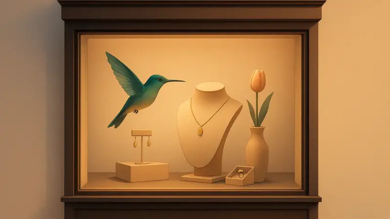 A concrete example is a bookstore window where the “story” is just a line your eyes follow: a stack of cookbooks leading to a mixing bowl, leading to a stand mixer, leading to a single featured title. In daylight you mostly catch the book covers and glare. At dusk, a warm lamp inside makes the bowl shine, the mixer throws a crisp shadow, and the featured title ends up looking like the ending of the scene.