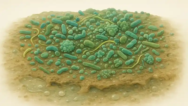 If you pull the stopper in a bathroom sink, you sometimes see a dark ring where water sits. It shows up in apartment kitchens in New York, in older homes in the UK, and in high-rise bathrooms in Singapore. It isn’t one single place or one famous incident. It’s a process that happens wherever water, soap, skin oils, and time meet. That ring is usually a biofilm: microbes stuck to a surface, held together by a slimy matrix they make. The core mechanism is simple. Flow brings food and cells. Surfaces give them a place to attach. Then the community builds a protective layer that changes what “clean” even means in that spot.